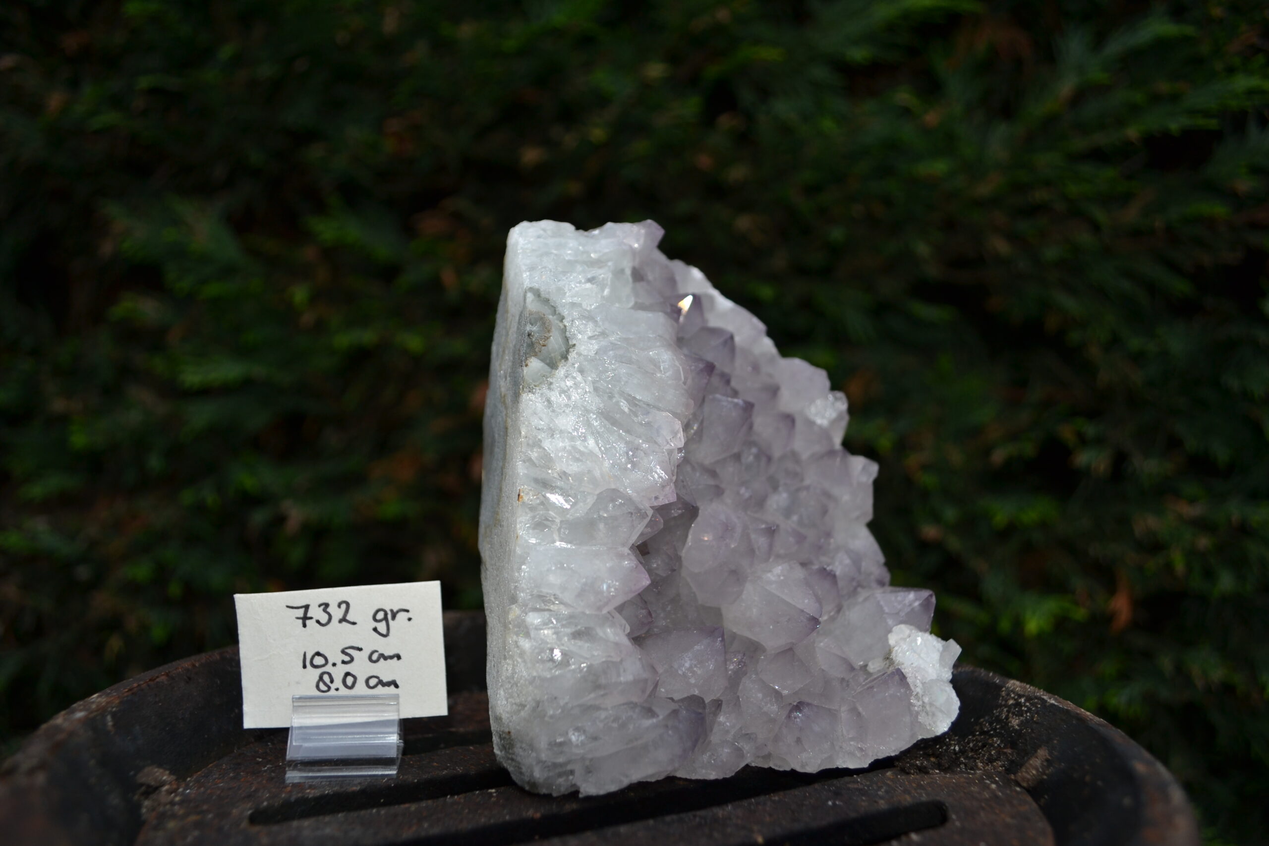 Dit prachtige amethist cluster valt op door zijn zachte, lichtpaarse kristallen en natuurlijke glans. De kristalpunten groeien in een mooie compacte formatie en geven het stuk een rustige, harmonieuze uitstraling. Dankzij de subtiele kleur en sprankelende kristallen is dit cluster een echte blikvanger in elk interieur.
