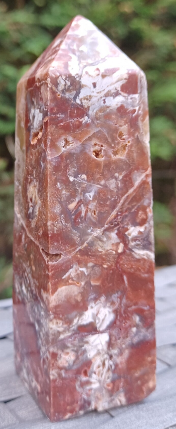 Een obelisk (4-kantig) / toren van 10.5 cm hoog en weegt 196 gram. Heeft prachtige gekristalliseerde openingen.